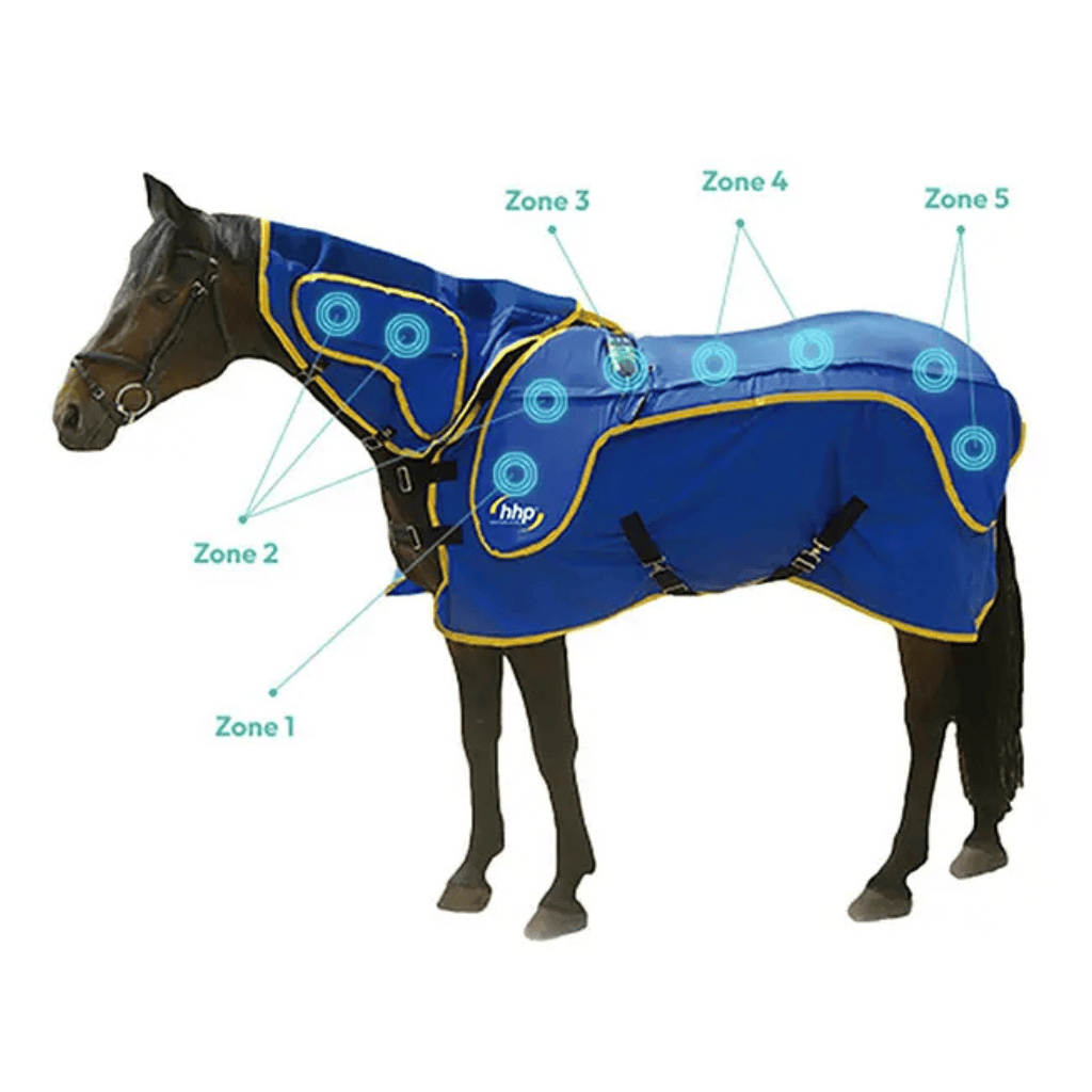 Het rugdeken wordt aangebracht zoals een gewoon paardendeken. Het rugdeken bevat in totaal 14 motoren die de belangrijkste spiergroepen in de rug masseren, naargelang het gekozen programma.