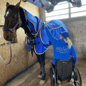 ANDUVET is het ultieme therapiedeken voor uw paard! Dit gecertificeerde en gepatenteerde massagedeken, ontwikkeld in Duitsland, biedt wetenschappelijk bewezen voordelen. Het zorgt voor effectieve pijnverlichting en diepgaande ontspanning van de rug en spieren van uw paard, zodat het zich beter voelt en optimaal kan presteren.