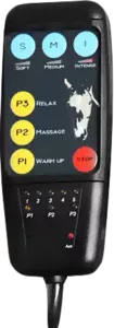 De handbediening is eenvoudig te gebruiken. Ze bevat drie verschillende programma’s die elk een eigen doel hebben met drie intensiteiten: “soft”, “medium” en “intensive”. Op de handbediening is onderaan ook te zien welke spiergroepen of zones van het lichaam worden aangesproken.